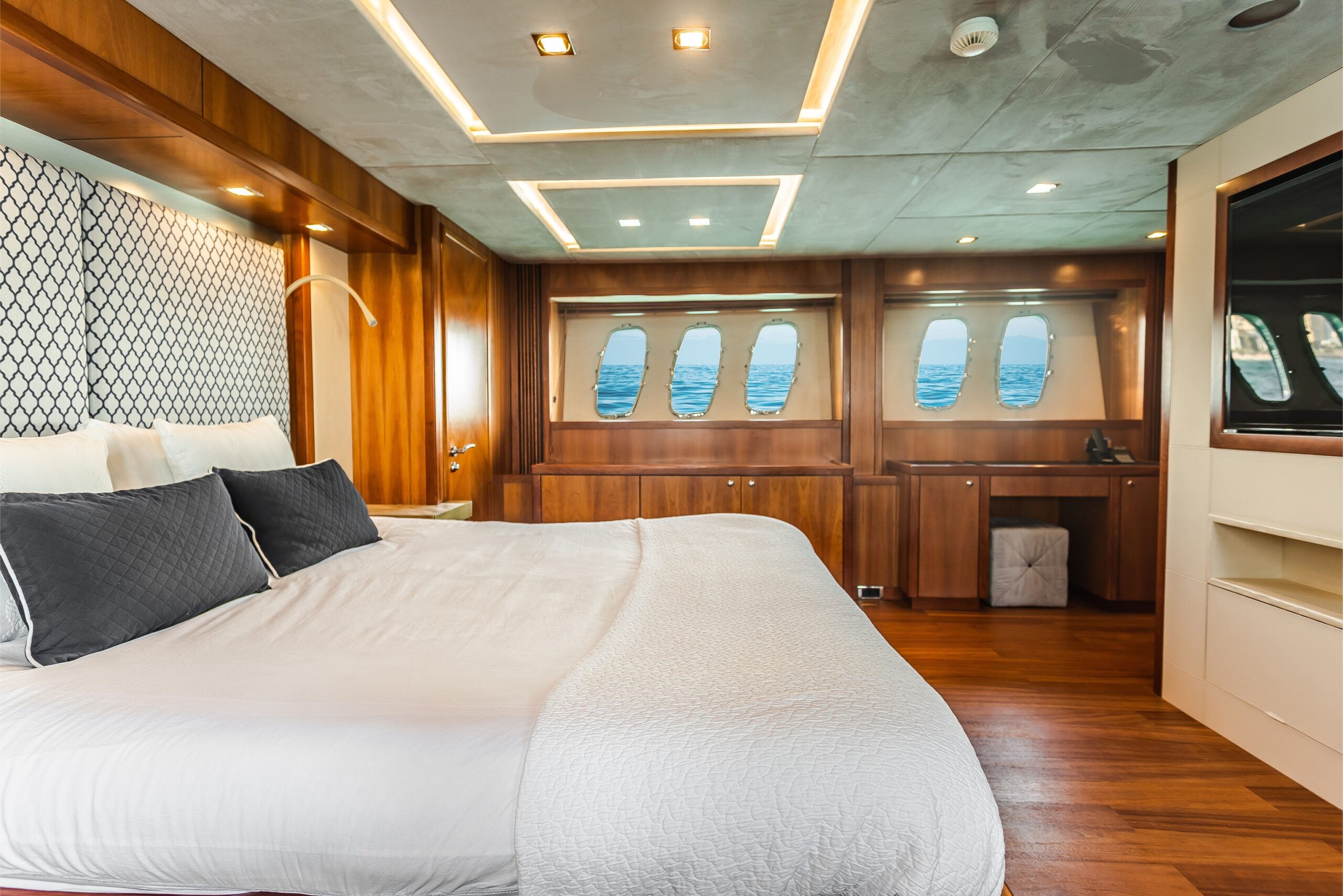 ✔ Premium yachts may include VIP suites or owner’s cabins with walk-in closets and private balconies.